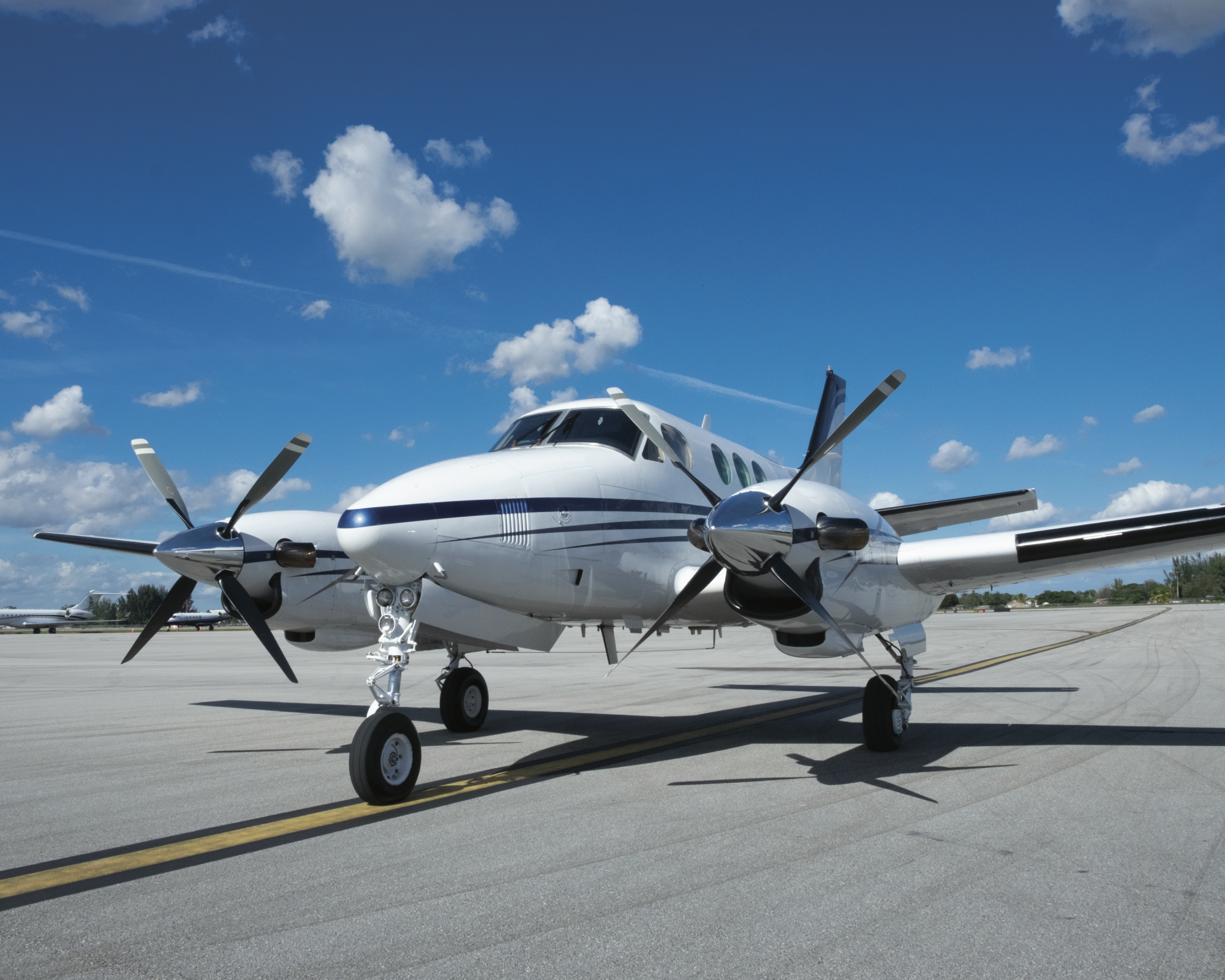 The King Air 90 is a whole new world of flying that offers the impressive King Air qualities of performance combined with comfort. This versatile workhorse has great range and payload due to its features like composite winglets, swept-blade propellers and dual aft strakes. The King Air 90 is a twin-engine turboprop aircraft with an average cruise speed of 240 knots. The King Air 90 is an all-weather capable aircraft utilized by flight departments around the world.