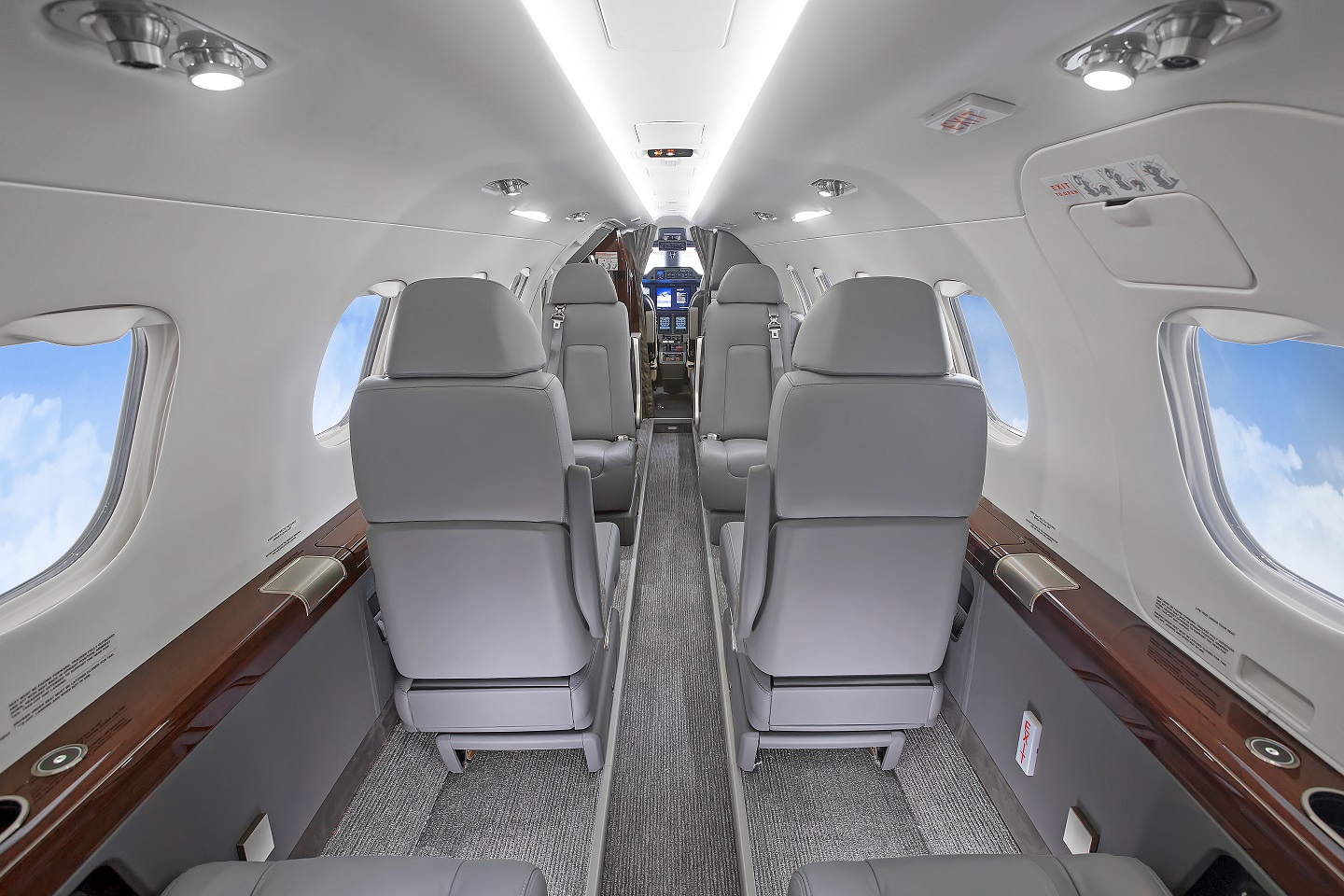 Showcasing a remarkable union of technology and design the Praetor 500, upgraded from the original Legacy 450, delivers breathtaking speed, enviable range, unmatched comfort, and an ultra quiet cabin. With its full fly-by-wire technology and state-of-the-art avionics, this aircraft delivers unprecedented runway performance and and exhilarating flight experience. Fully berthing seats, generous stowage space and advanced technology at your fingertips. (8 passenger - WiFi)